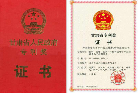 甘肅省首屆專(zhuān)利獎(jiǎng)評(píng)選結(jié)果于2016年2月3日揭曉,我公司“控制、監(jiān)督、監(jiān)測(cè)一體化的鐵路信號(hào)基礎(chǔ)設(shè)備電子控制裝置”發(fā)明專(zhuān)利獲得了首屆甘肅省專(zhuān)利獎(jiǎng)一等獎(jiǎng),位列5個(gè)一等獎(jiǎng)之首。公司董事長(zhǎng)范多旺教授參加甘肅省科學(xué)技術(shù)專(zhuān)利獎(jiǎng)勵(lì)大會(huì)。